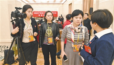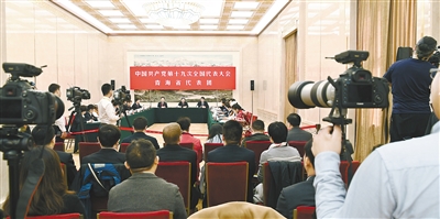 10月19日上午,我省代表团在人民大会堂青海厅举行全体会议,继续讨论习近平同志所作的报告,并向中外媒体开放