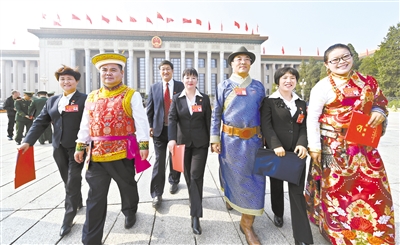 10月24日上午,人民大会堂前,暖阳高照,红旗飘扬。我省代表与来自全国各地的代表们一道,出席中国共产党第十九次全国代表大会闭幕会。